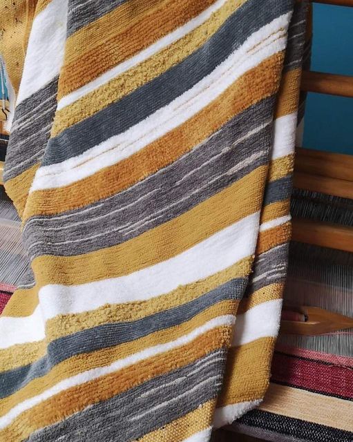 Je me suis gâtée et j’ai commandé un magnifique jeté tissé à la main par une artisane du Québec!!! Les tissages de Josée
